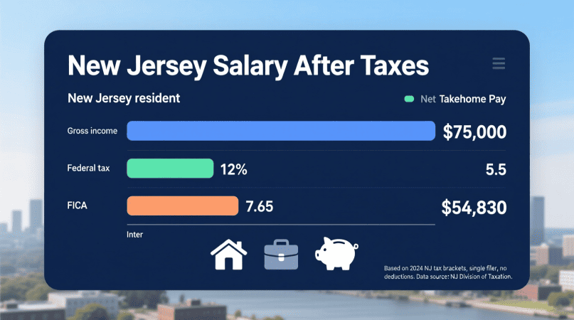 If you live or work in New Jersey, your salary after taxes—often called take-home pay—will be less than your gross income once federal, state, and payroll deductions are applied.