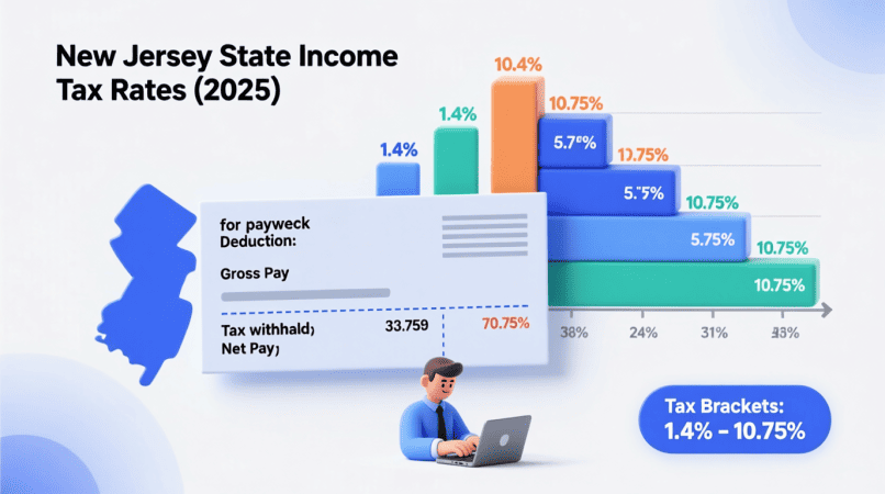 If you work in New Jersey, you’ve probably noticed that your paycheck includes a deduction for state income tax. But what exactly is the New Jersey state income tax rate, and how much will it reduce your take-home pay each pay period?