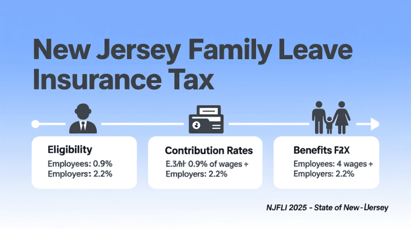 For 2025, New Jersey set the FLI contribution rate at 0.33% of an employee’s wages, up to the wage base of $165,400.